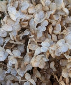 Hydrangea paniculata ‘BloomChampion Fresh White’ showing pink autumn coloring during October in Jordan, Ontario.