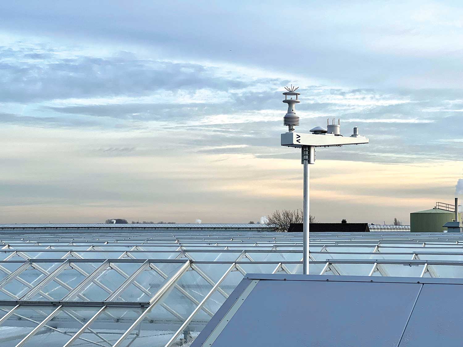 Monitoring the weather with a weather station enables controlled environment growers to make decisions to ensure efficient use of their crop inputs and their growing structures aren’t impacted negatively by changing weather conditions. Photo courtesy of Priva.