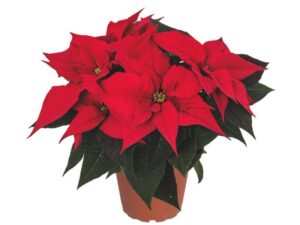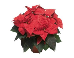 ‘Bouquet’ (Dümmen Orange). The name is designed to evoke the image of a bouquet of flowers — plants are upright with a narrow base and numerous bract clusters at the top. Bracts are brighter red than either ‘Premium Red’ or ‘Prestige Red’, medium sized and slightly elongated. Centers are tight with distinct cyathia. Stem thickness and strength are similar to ‘Prestige Red’ and Premium. ‘Bouquet’ finishes at eight weeks and is similar in vigor to ‘Prestige Red’. ‘Bouquet’ has the potential to be an important cultivar because of its attractive appearance combined with the upright habit. It can be used in a range of pot sizes.