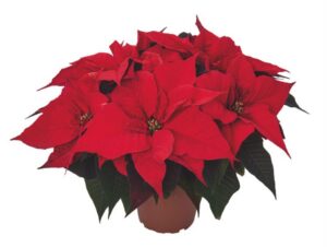 ‘Aria Red’ (Syngenta). This is an attractive cultivar suited for smaller size formats. The bright red bracts are smaller than average and held upright on top of the plant. Centers are smaller than average. Branching is very good and habit is a wide V shape. Plants have low to medium vigor. Compared to ‘Titan Red’, the plants are shorter and fuller with more leaves and bracts. Although described as an early season cultivar, plants flowered midseason at both trial locations. ‘Aria Red’ will likely be most useful in 61⁄2-inch or smaller pots or other formats needing a short attractive plant.