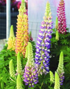 This new perennial series features attractive solid and bicolor hues and numerous flower stalks per plant. Propagated from tissue culture, Staircase lupine is very uniform across all colors.