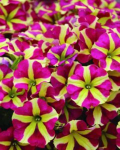 The new Amore series, headlined by Queen of Hearts, features petunias bearing unique patterns. All varieties have similar semi-trailing habits, and they are bred specifically for stability in their flowers.