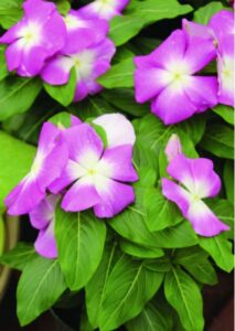 The Mega Bloom series, bred in Thailand, boasts enormous flowers on nice, compact plants. These vinca require zero plant growth regulation.