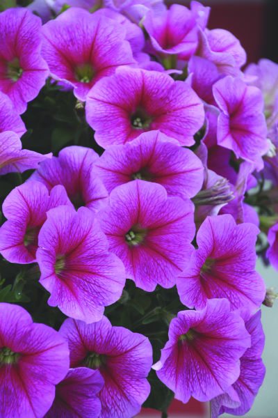 The new Amore series, headlined by Queen of Hearts, features petunias bearing unique patterns. All varieties have similar semi-trailing habits, and they are bred specifically for stability in their flowers.