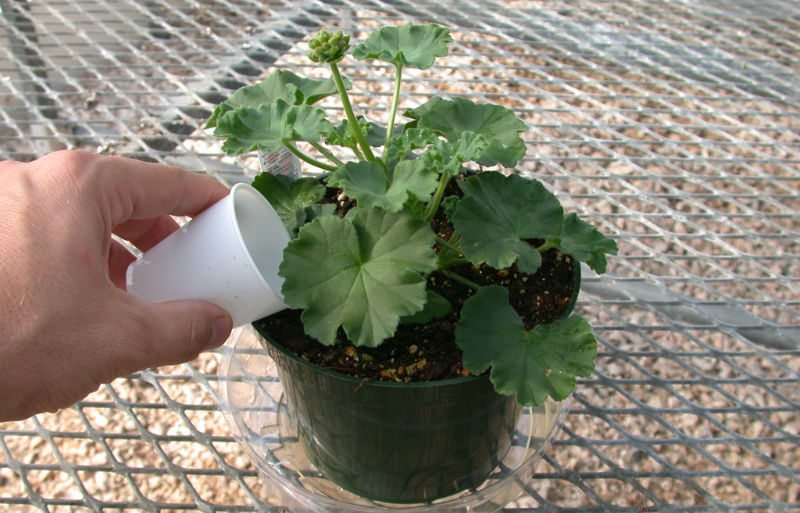 Vegetative petunia showing symptoms of a substrate with low EC as determined by the PourThru technique. (Photo: Brian Whipker)