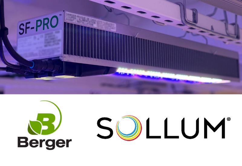 Berger partners with Sollum Technologies to study crop optimization using dynamic LED lighting in research greenhouses.