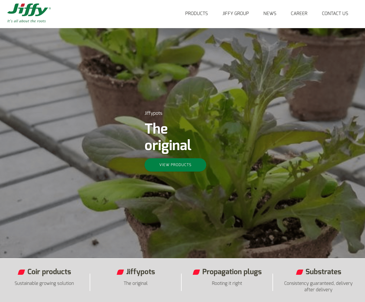 Jiffy’s wide array of products are divided into four categories — Coir Products, Jiffypots, Propagation Plugs and Substrates — and highlighted on the homepage making product information more accessible to customers.