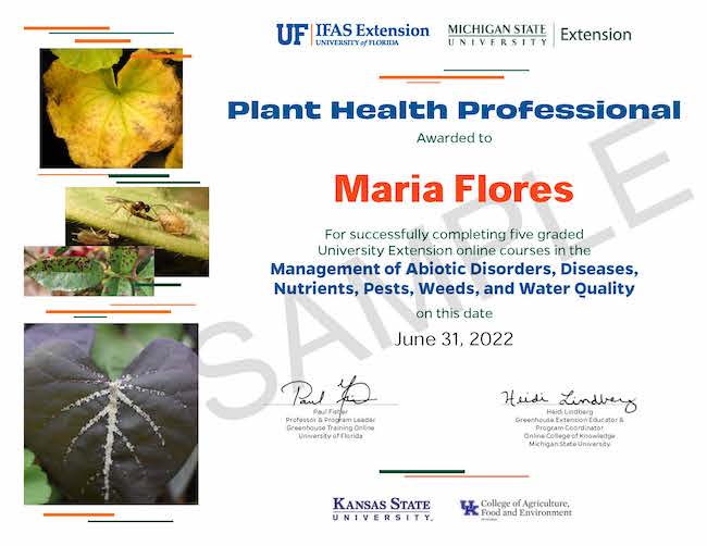 Over 4,000 growers have already graduated from individual courses through the UF/IFAS Extension Greenhouse Training Online and the MSU College of Knowledge programs. Under the new collaboration, growers who pass five courses in plant health in these programs can obtain a new certificate of completion that recognizes their training, skills and dedication, and will help them grow in their careers.